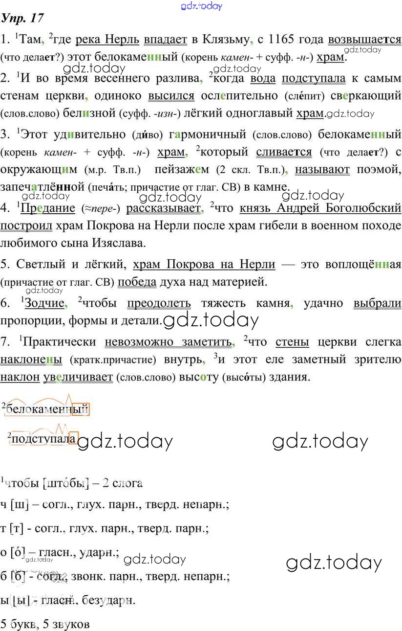 Ответы к Решение к упражнениям 17 Учебнику по Русскому языку для 8 класса Тростенцова, Ладыженская Просвещение 2014