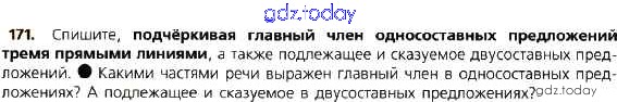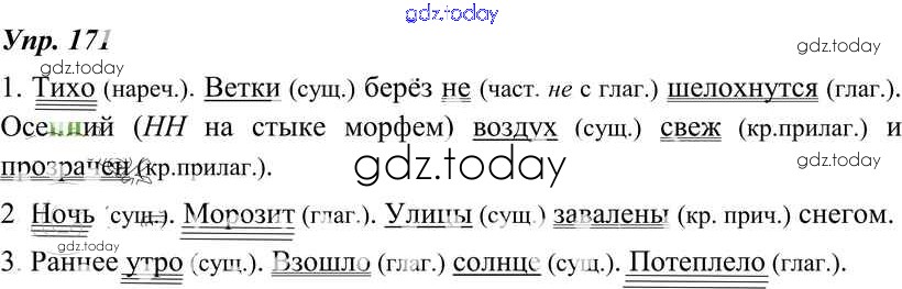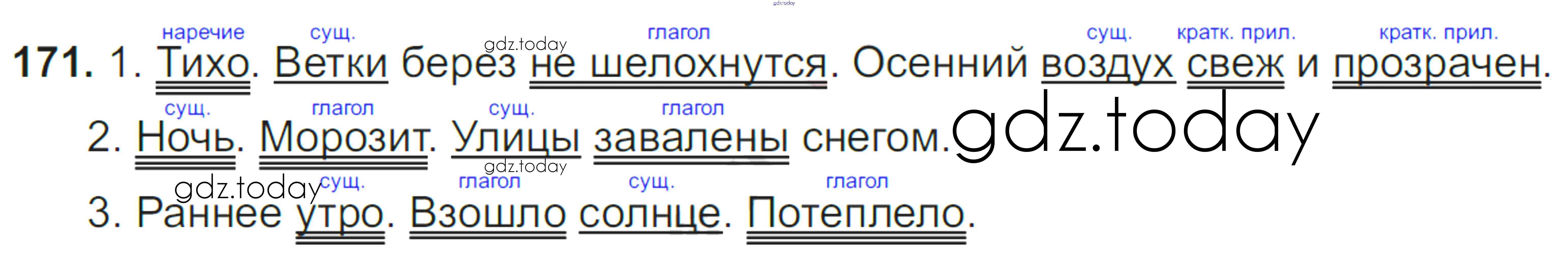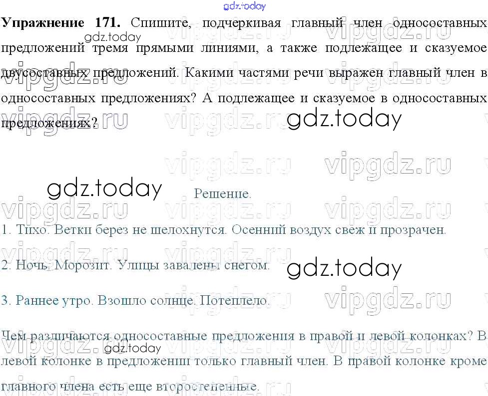 На страницах сайта gdz.today вы найдете учебный и вспомогательный материал, направленный на улучшения знаний школьной программы. ГДЗ - онлайн мир знаний Решение к упражнениям 171 Учебнику по Русскому языку для 8 класса Тростенцова, Ладыженская Просвещение 2014