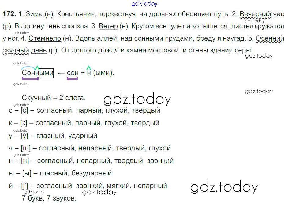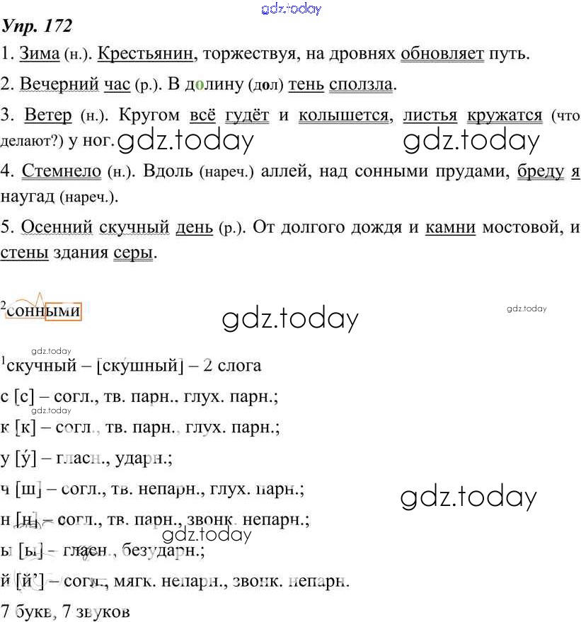 На страницах сайта gdz.today вы найдете учебный и вспомогательный материал, направленный на улучшения знаний школьной программы. ГДЗ - онлайн мир знаний Решение к упражнениям 172 Учебнику по Русскому языку для 8 класса Тростенцова, Ладыженская Просвещение 2014