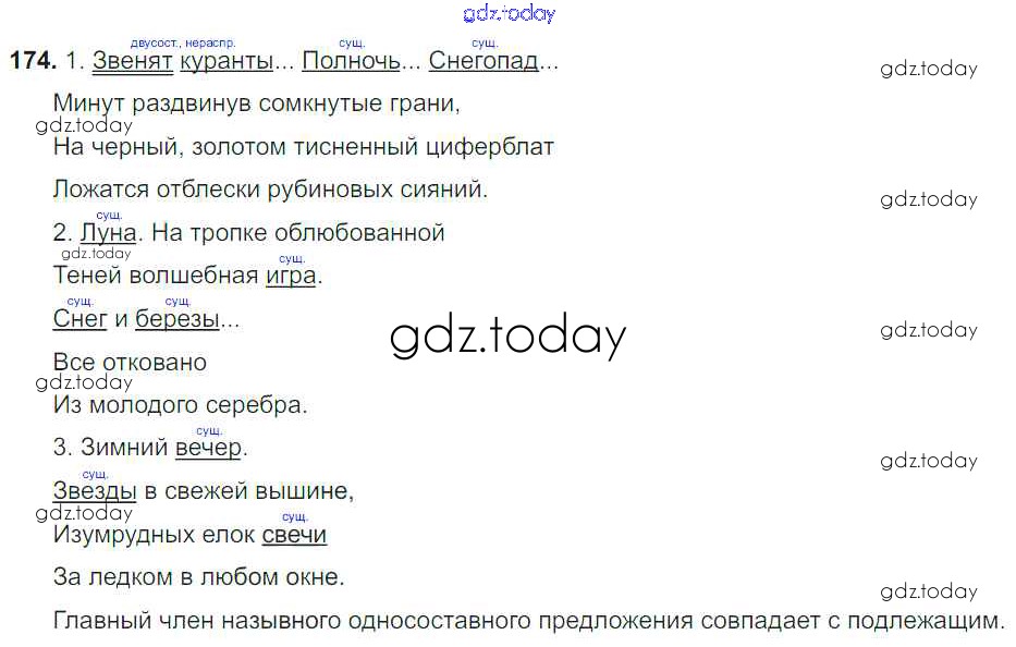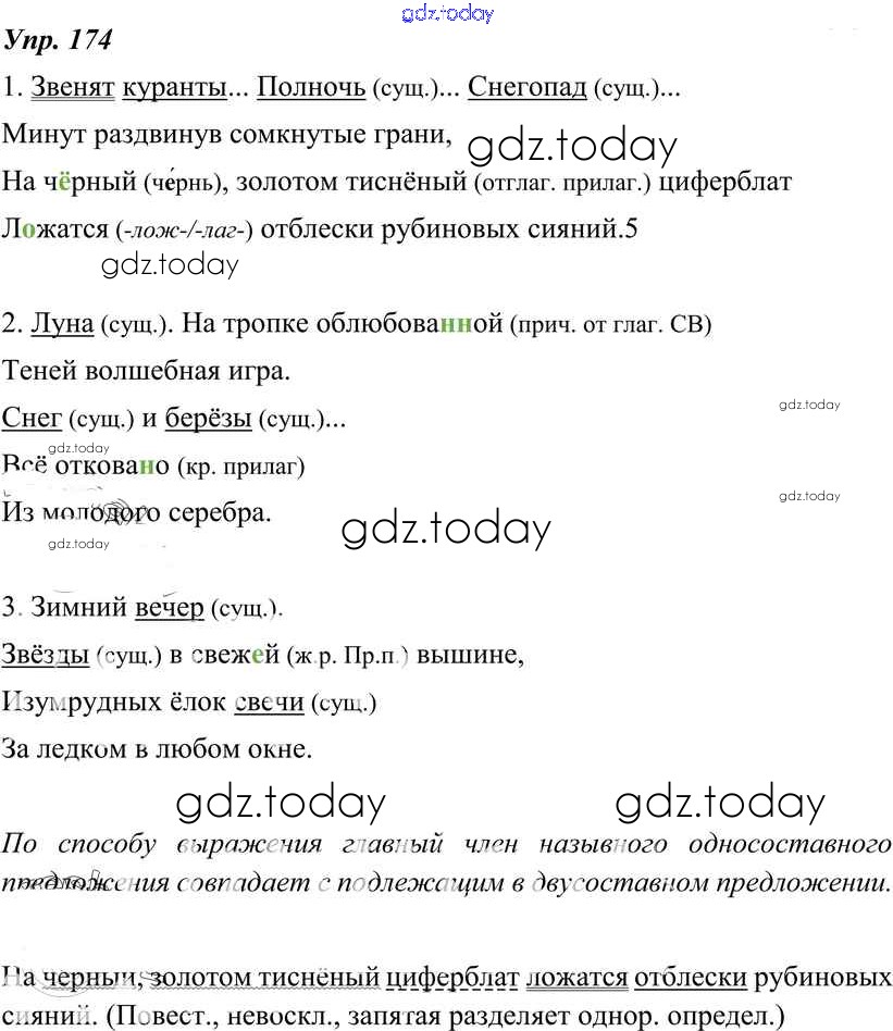 На страницах сайта gdz.today вы найдете учебный и вспомогательный материал, направленный на улучшения знаний школьной программы. ГДЗ - онлайн мир знаний Решение к упражнениям 174 Учебнику по Русскому языку для 8 класса Тростенцова, Ладыженская Просвещение 2014