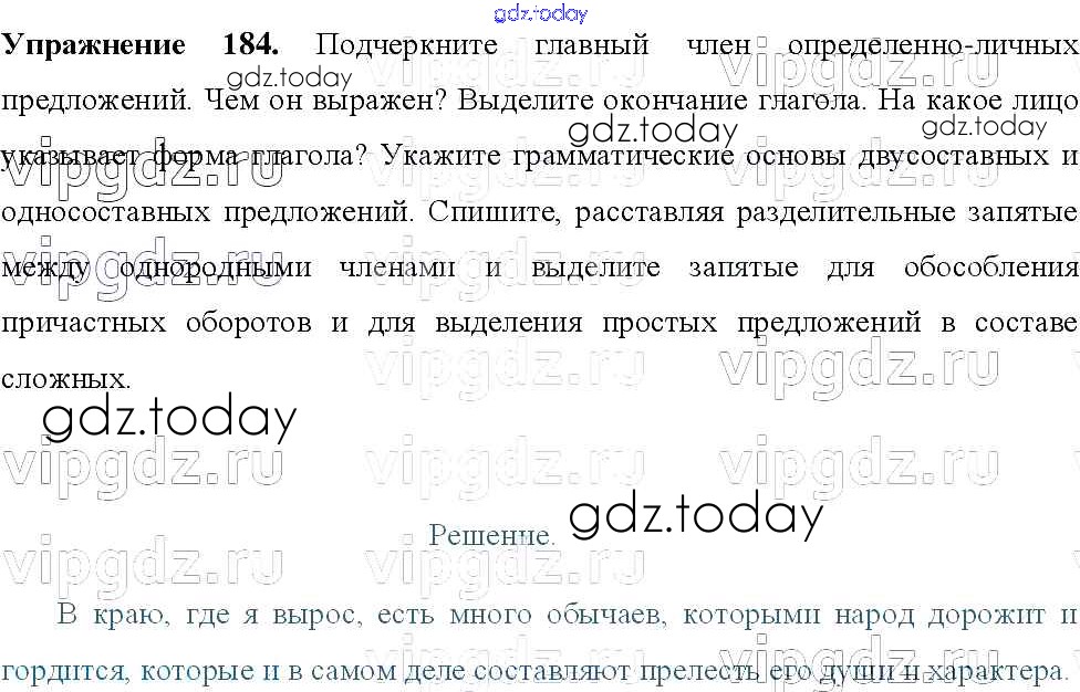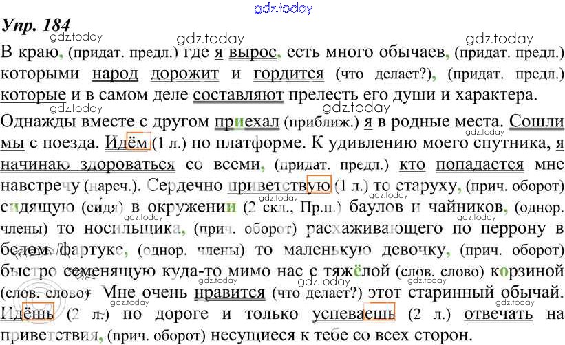 На страницах сайта gdz.today вы найдете учебный и вспомогательный материал, направленный на улучшения знаний школьной программы. ГДЗ - онлайн мир знаний Решение к упражнениям 184 Учебнику по Русскому языку для 8 класса Тростенцова, Ладыженская Просвещение 2014