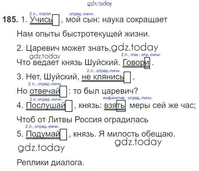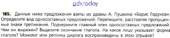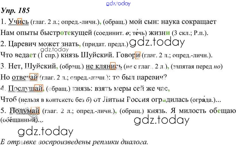 На страницах сайта gdz.today вы найдете учебный и вспомогательный материал, направленный на улучшения знаний школьной программы. ГДЗ - онлайн мир знаний Решение к упражнениям 185 Учебнику по Русскому языку для 8 класса Тростенцова, Ладыженская Просвещение 2014