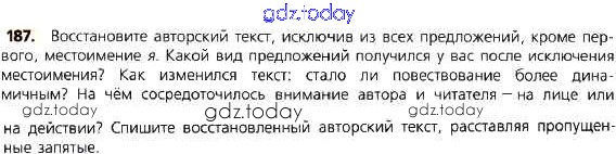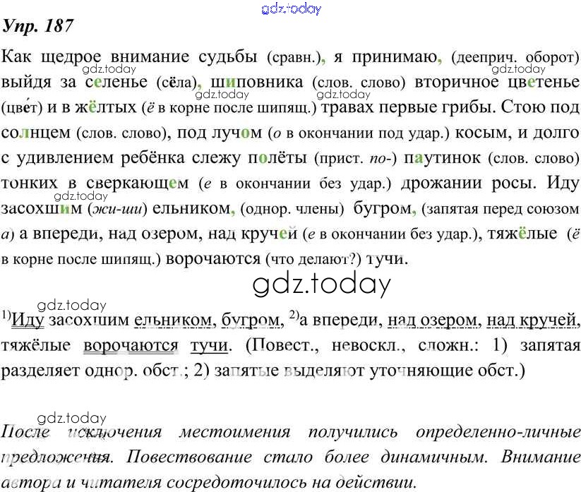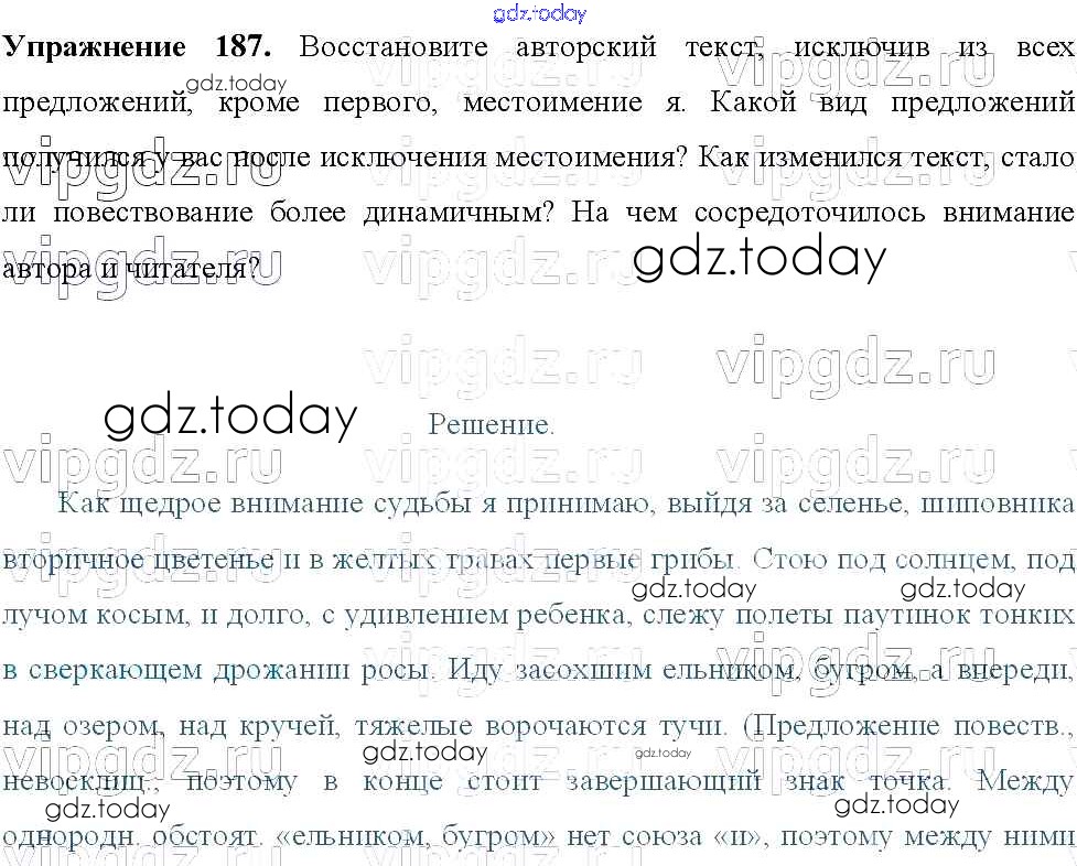 Ответы к Решение к упражнениям 187 Учебнику по Русскому языку для 8 класса Тростенцова, Ладыженская Просвещение 2014