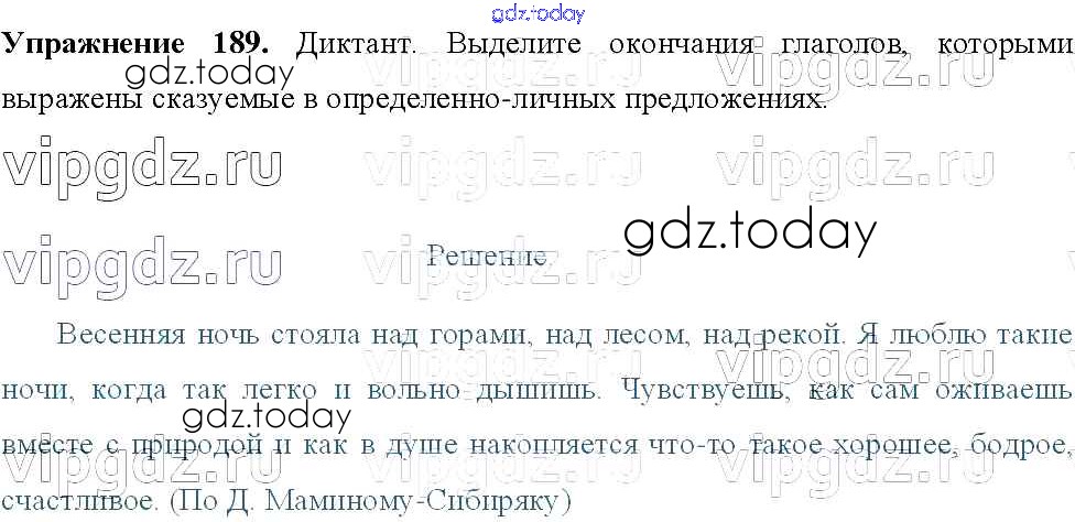 Ответы к Решение к упражнениям 189 Учебнику по Русскому языку для 8 класса Тростенцова, Ладыженская Просвещение 2014