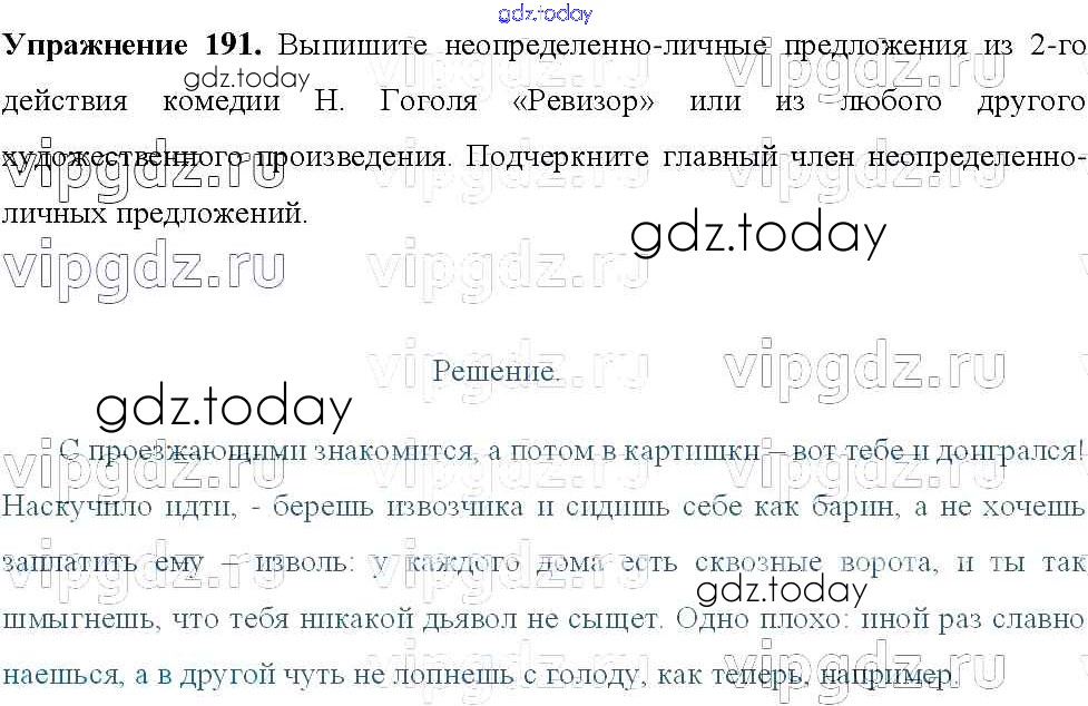 На страницах сайта gdz.today вы найдете учебный и вспомогательный материал, направленный на улучшения знаний школьной программы. ГДЗ - онлайн мир знаний Решение к упражнениям 191 Учебнику по Русскому языку для 8 класса Тростенцова, Ладыженская Просвещение 2014