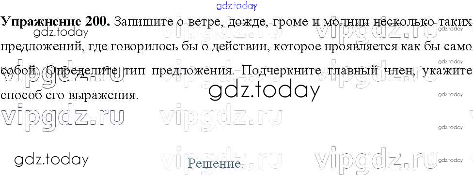 На страницах сайта gdz.today вы найдете учебный и вспомогательный материал, направленный на улучшения знаний школьной программы. ГДЗ - онлайн мир знаний Решение к упражнениям 200 Учебнику по Русскому языку для 8 класса Тростенцова, Ладыженская Просвещение 2014