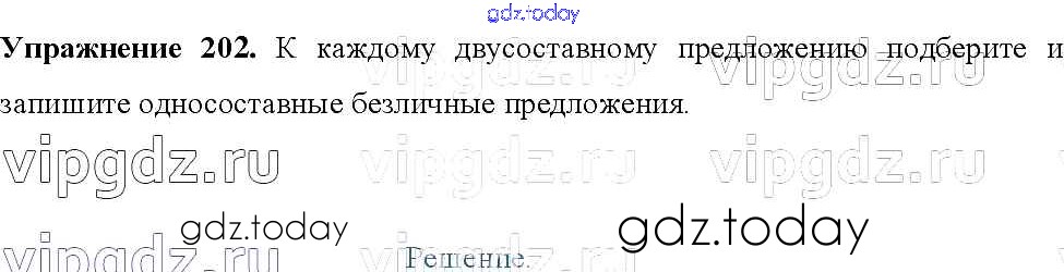 Ответы к Решение к упражнениям 202 Учебнику по Русскому языку для 8 класса Тростенцова, Ладыженская Просвещение 2014