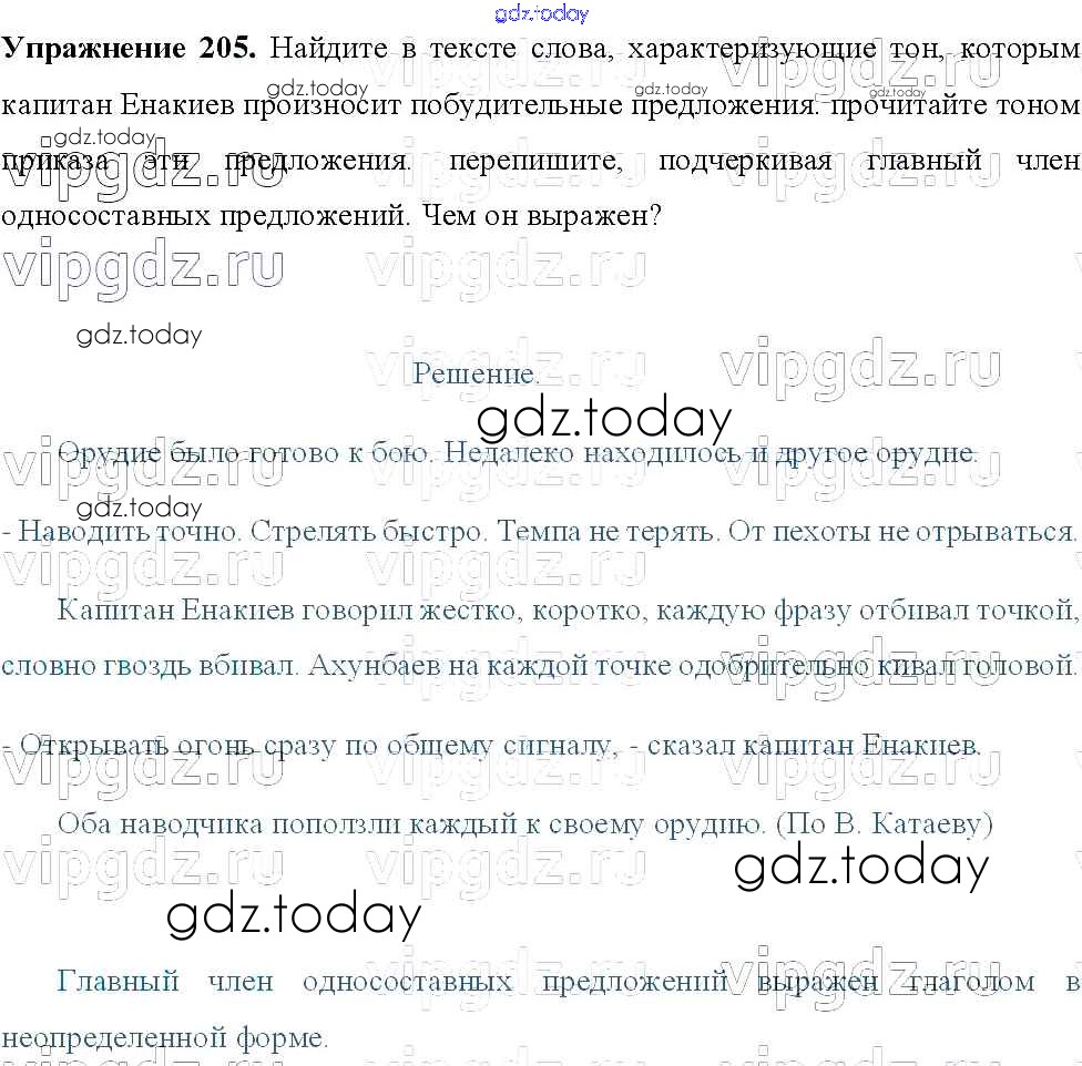 На страницах сайта gdz.today вы найдете учебный и вспомогательный материал, направленный на улучшения знаний школьной программы. ГДЗ - онлайн мир знаний Решение к упражнениям 205 Учебнику по Русскому языку для 8 класса Тростенцова, Ладыженская Просвещение 2014