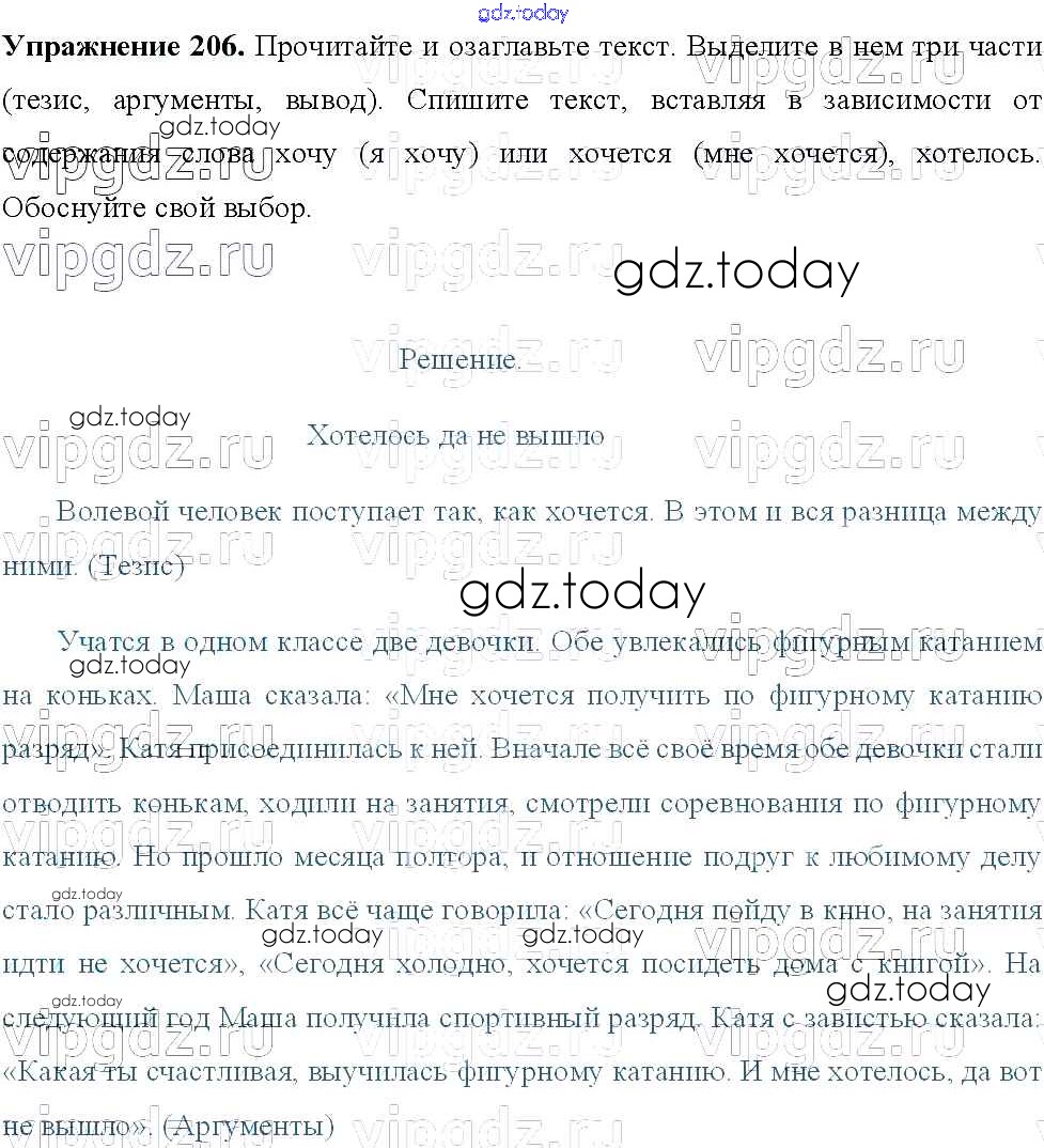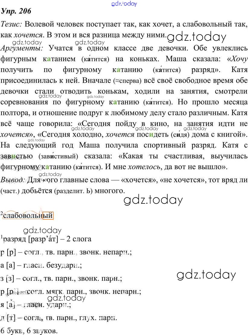 На страницах сайта gdz.today вы найдете учебный и вспомогательный материал, направленный на улучшения знаний школьной программы. ГДЗ - онлайн мир знаний Решение к упражнениям 206 Учебнику по Русскому языку для 8 класса Тростенцова, Ладыженская Просвещение 2014