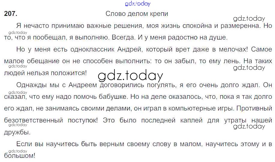 На страницах сайта gdz.today вы найдете учебный и вспомогательный материал, направленный на улучшения знаний школьной программы. ГДЗ - онлайн мир знаний Решение к упражнениям 207 Учебнику по Русскому языку для 8 класса Тростенцова, Ладыженская Просвещение 2014