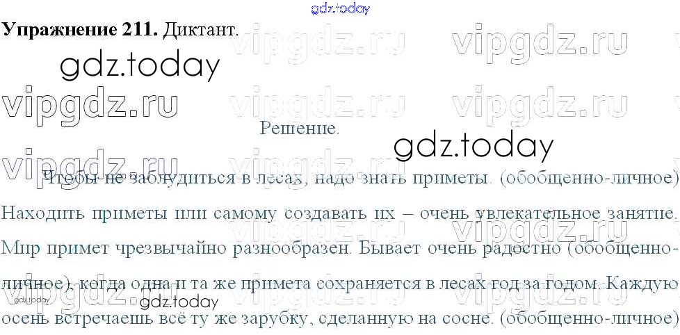 На страницах сайта gdz.today вы найдете учебный и вспомогательный материал, направленный на улучшения знаний школьной программы. ГДЗ - онлайн мир знаний Решение к упражнениям 211 Учебнику по Русскому языку для 8 класса Тростенцова, Ладыженская Просвещение 2014
