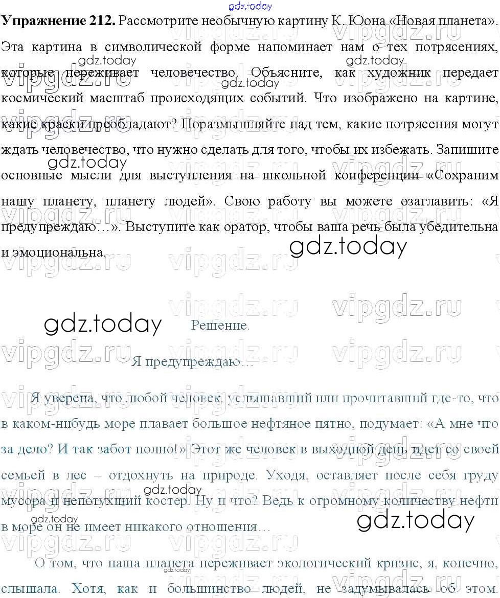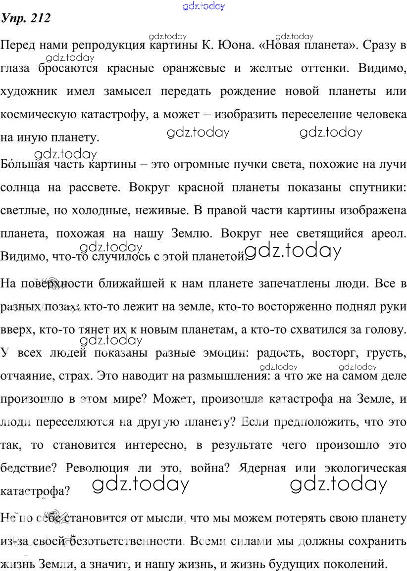 Ответы к Решение к упражнениям 212 Учебнику по Русскому языку для 8 класса Тростенцова, Ладыженская Просвещение 2014