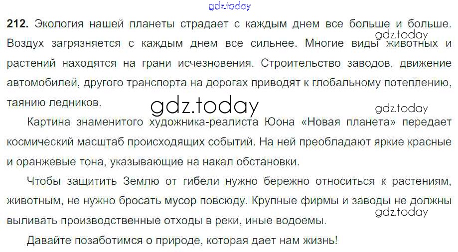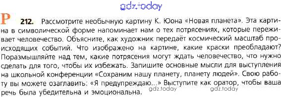 На страницах сайта gdz.today вы найдете учебный и вспомогательный материал, направленный на улучшения знаний школьной программы. ГДЗ - онлайн мир знаний Решение к упражнениям 212 Учебнику по Русскому языку для 8 класса Тростенцова, Ладыженская Просвещение 2014