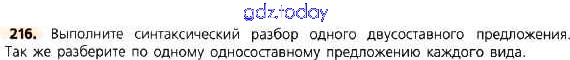 Ответы к Решение к упражнениям 216 Учебнику по Русскому языку для 8 класса Тростенцова, Ладыженская Просвещение 2014