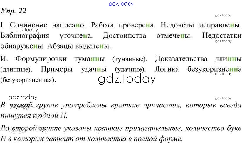 Ответы к Решение к упражнениям 22 Учебнику по Русскому языку для 8 класса Тростенцова, Ладыженская Просвещение 2014
