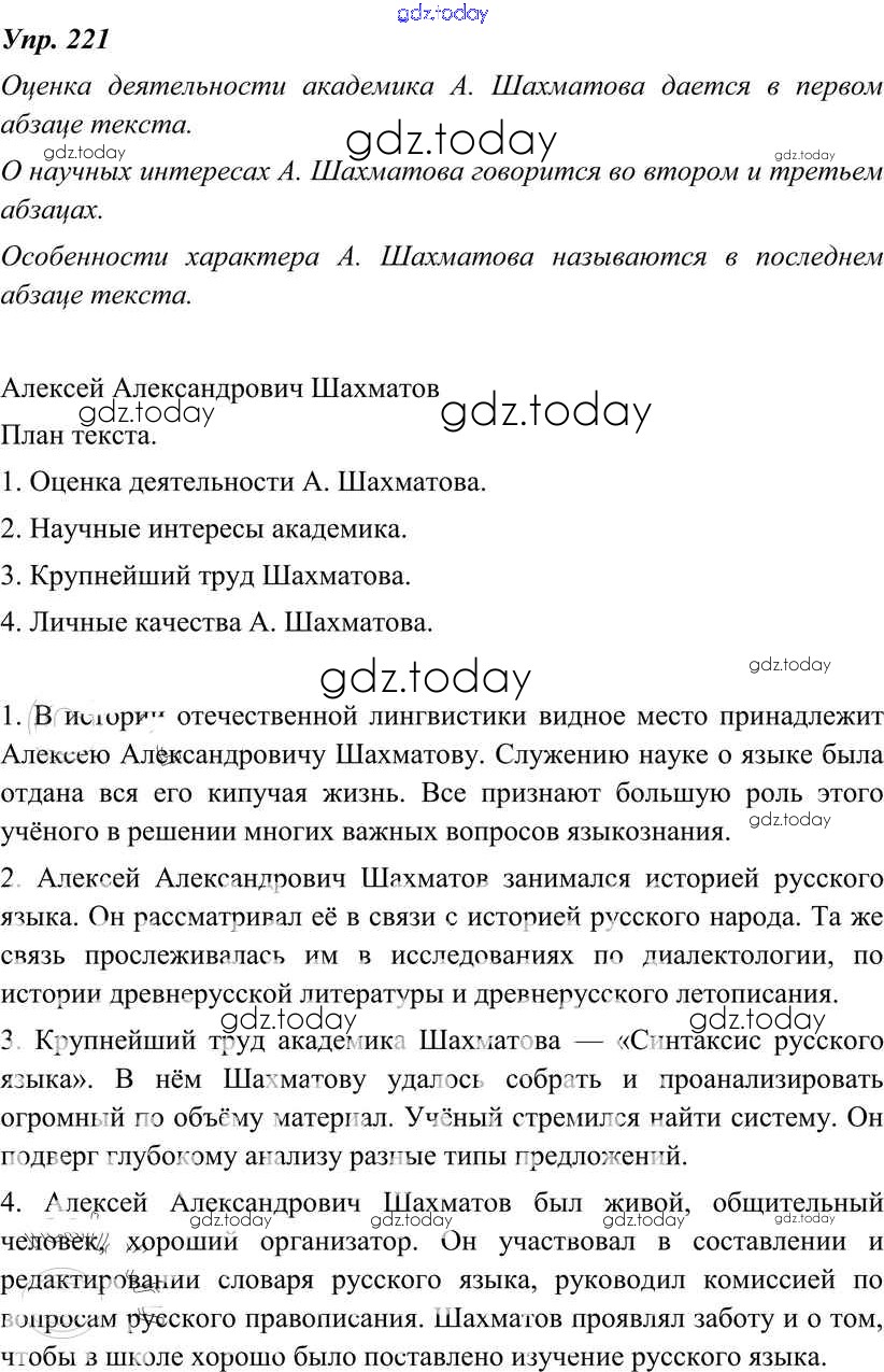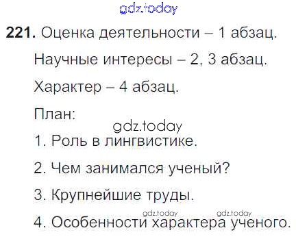 На страницах сайта gdz.today вы найдете учебный и вспомогательный материал, направленный на улучшения знаний школьной программы. ГДЗ - онлайн мир знаний Решение к упражнениям 221 Учебнику по Русскому языку для 8 класса Тростенцова, Ладыженская Просвещение 2014