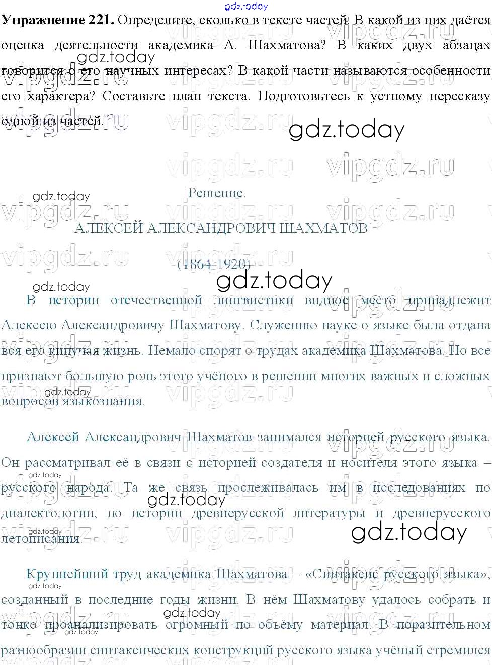 Ответы к Решение к упражнениям 221 Учебнику по Русскому языку для 8 класса Тростенцова, Ладыженская Просвещение 2014