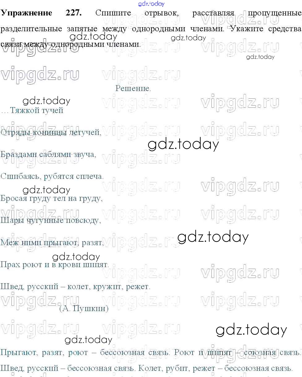 На страницах сайта gdz.today вы найдете учебный и вспомогательный материал, направленный на улучшения знаний школьной программы. ГДЗ - онлайн мир знаний Решение к упражнениям 227 Учебнику по Русскому языку для 8 класса Тростенцова, Ладыженская Просвещение 2014
