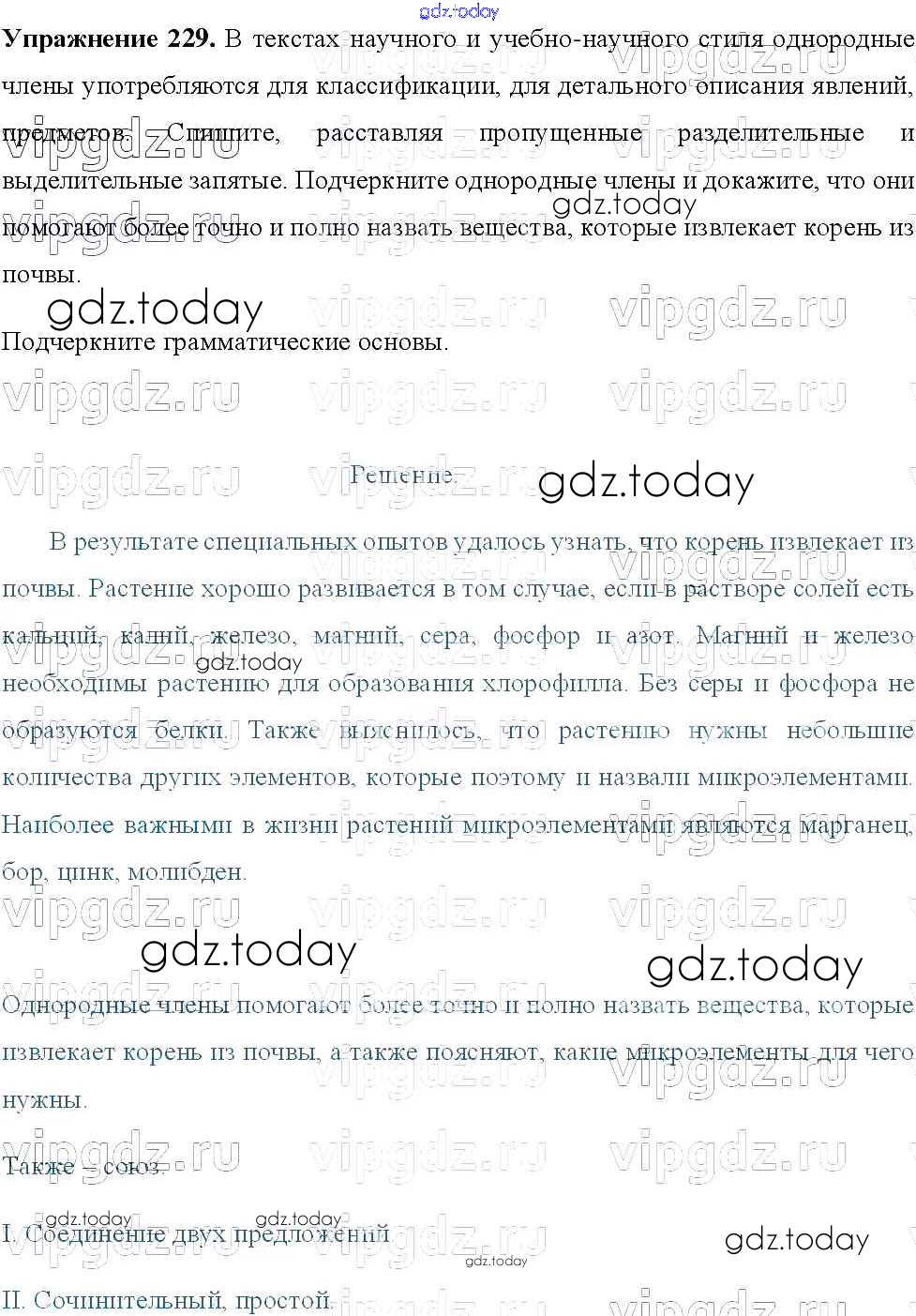 На страницах сайта gdz.today вы найдете учебный и вспомогательный материал, направленный на улучшения знаний школьной программы. ГДЗ - онлайн мир знаний Решение к упражнениям 229 Учебнику по Русскому языку для 8 класса Тростенцова, Ладыженская Просвещение 2014