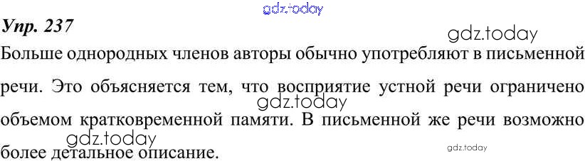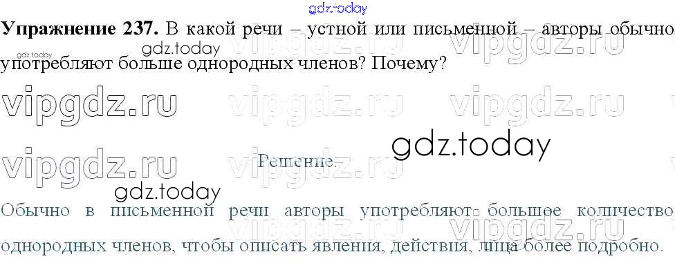 На страницах сайта gdz.today вы найдете учебный и вспомогательный материал, направленный на улучшения знаний школьной программы. ГДЗ - онлайн мир знаний Решение к упражнениям 237 Учебнику по Русскому языку для 8 класса Тростенцова, Ладыженская Просвещение 2014