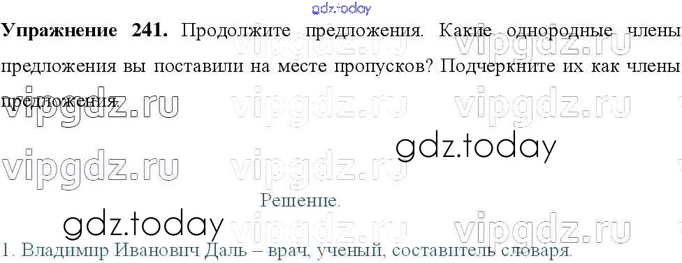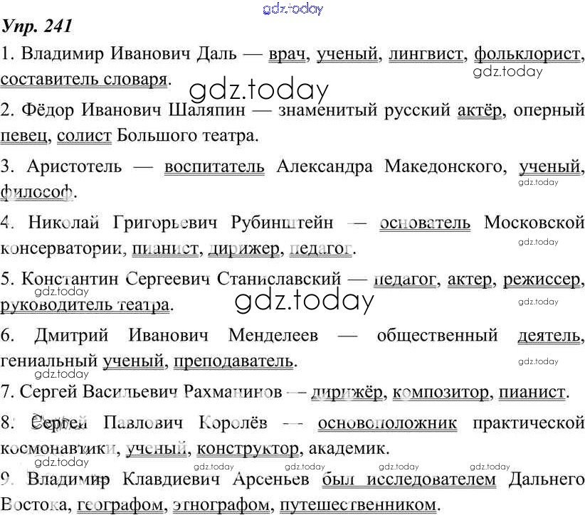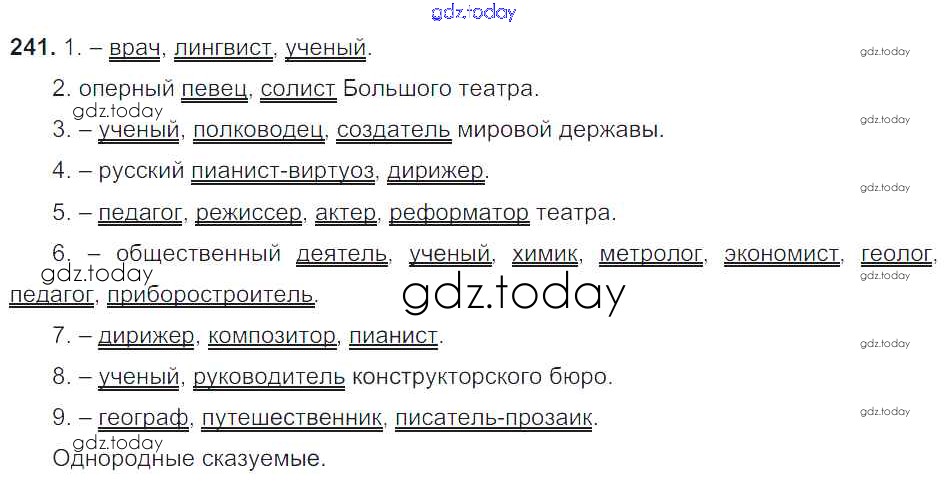На страницах сайта gdz.today вы найдете учебный и вспомогательный материал, направленный на улучшения знаний школьной программы. ГДЗ - онлайн мир знаний Решение к упражнениям 241 Учебнику по Русскому языку для 8 класса Тростенцова, Ладыженская Просвещение 2014