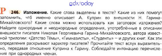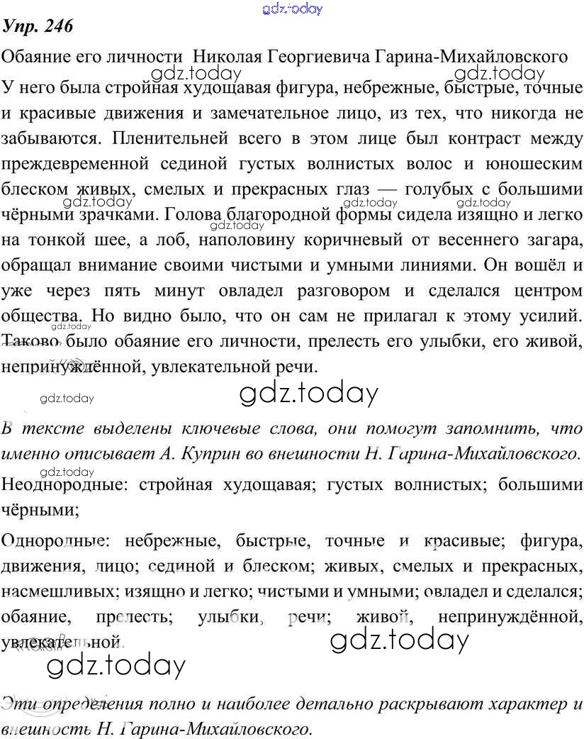 На страницах сайта gdz.today вы найдете учебный и вспомогательный материал, направленный на улучшения знаний школьной программы. ГДЗ - онлайн мир знаний Решение к упражнениям 246 Учебнику по Русскому языку для 8 класса Тростенцова, Ладыженская Просвещение 2014