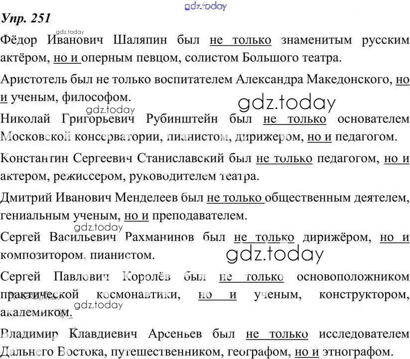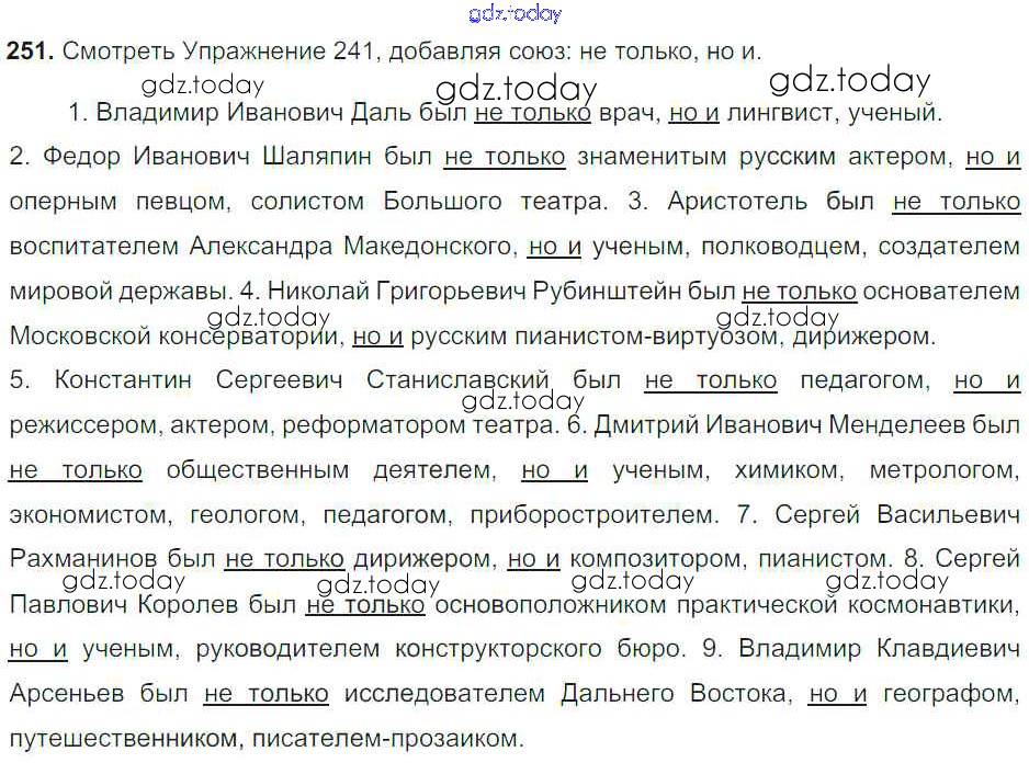 На страницах сайта gdz.today вы найдете учебный и вспомогательный материал, направленный на улучшения знаний школьной программы. ГДЗ - онлайн мир знаний Решение к упражнениям 251 Учебнику по Русскому языку для 8 класса Тростенцова, Ладыженская Просвещение 2014