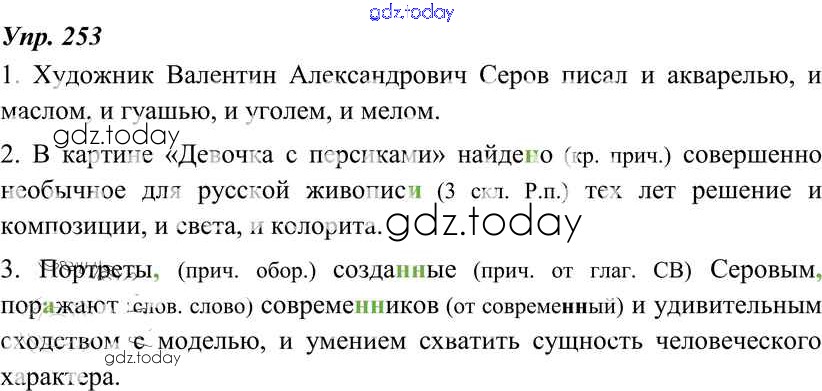 На страницах сайта gdz.today вы найдете учебный и вспомогательный материал, направленный на улучшения знаний школьной программы. ГДЗ - онлайн мир знаний Решение к упражнениям 253 Учебнику по Русскому языку для 8 класса Тростенцова, Ладыженская Просвещение 2014