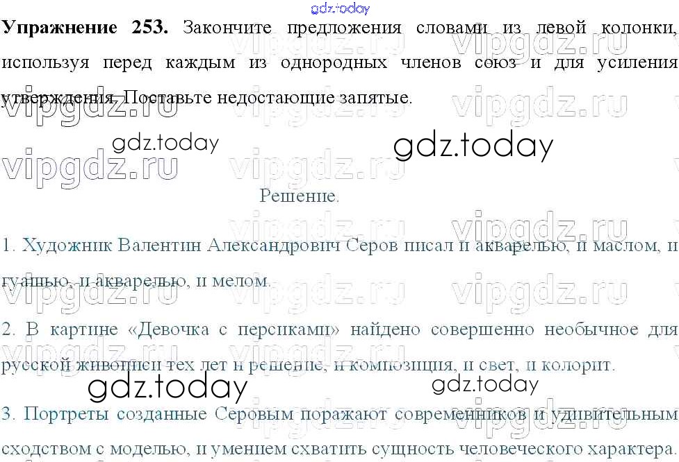 Ответы к Решение к упражнениям 253 Учебнику по Русскому языку для 8 класса Тростенцова, Ладыженская Просвещение 2014