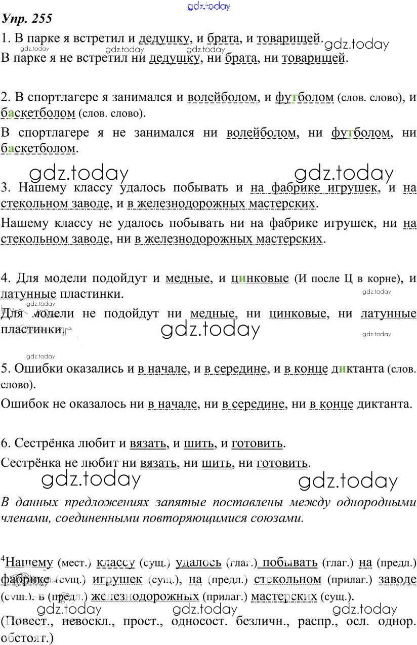 На страницах сайта gdz.today вы найдете учебный и вспомогательный материал, направленный на улучшения знаний школьной программы. ГДЗ - онлайн мир знаний Решение к упражнениям 255 Учебнику по Русскому языку для 8 класса Тростенцова, Ладыженская Просвещение 2014