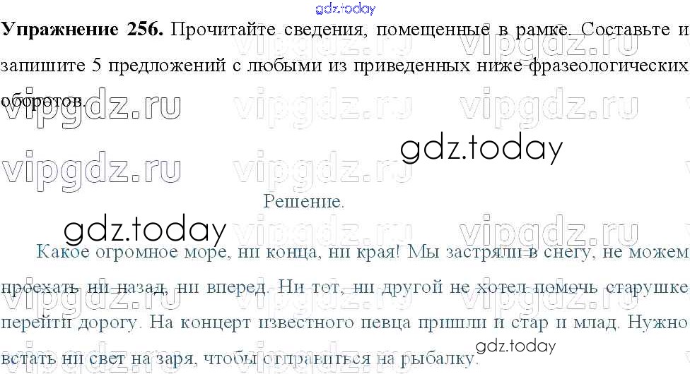 На страницах сайта gdz.today вы найдете учебный и вспомогательный материал, направленный на улучшения знаний школьной программы. ГДЗ - онлайн мир знаний Решение к упражнениям 256 Учебнику по Русскому языку для 8 класса Тростенцова, Ладыженская Просвещение 2014