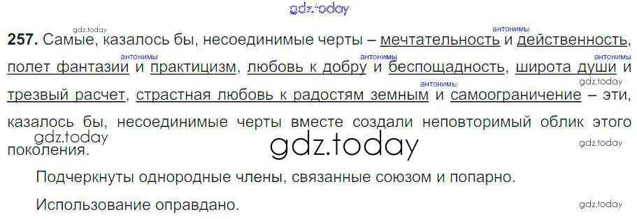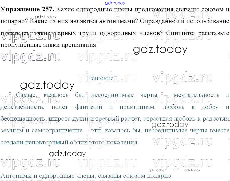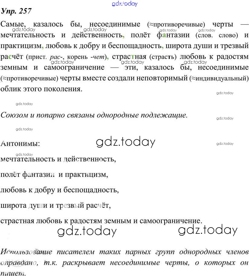 На страницах сайта gdz.today вы найдете учебный и вспомогательный материал, направленный на улучшения знаний школьной программы. ГДЗ - онлайн мир знаний Решение к упражнениям 257 Учебнику по Русскому языку для 8 класса Тростенцова, Ладыженская Просвещение 2014