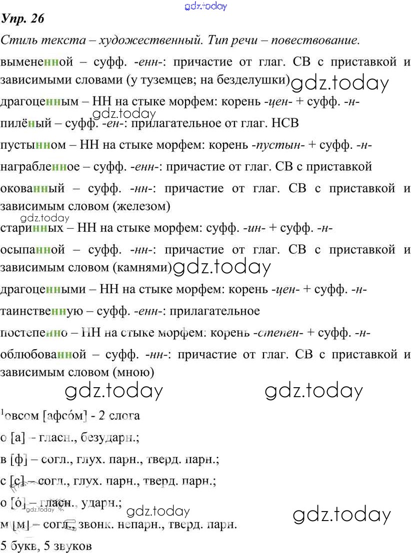 Ответы к Решение к упражнениям 26 Учебнику по Русскому языку для 8 класса Тростенцова, Ладыженская Просвещение 2014