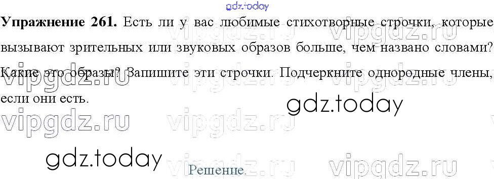 Ответы к Решение к упражнениям 261 Учебнику по Русскому языку для 8 класса Тростенцова, Ладыженская Просвещение 2014