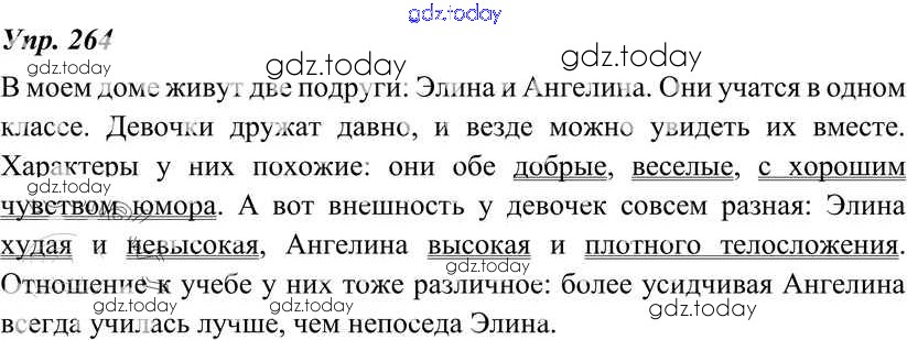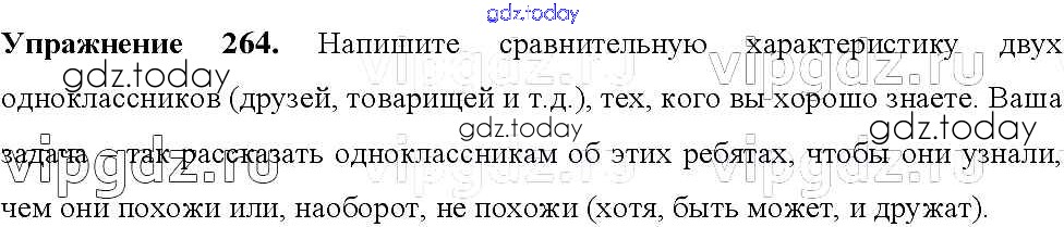 На страницах сайта gdz.today вы найдете учебный и вспомогательный материал, направленный на улучшения знаний школьной программы. ГДЗ - онлайн мир знаний Решение к упражнениям 264 Учебнику по Русскому языку для 8 класса Тростенцова, Ладыженская Просвещение 2014