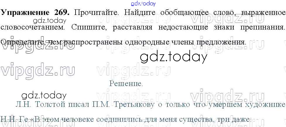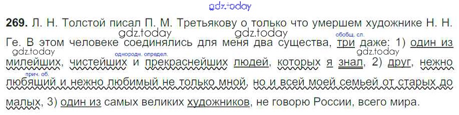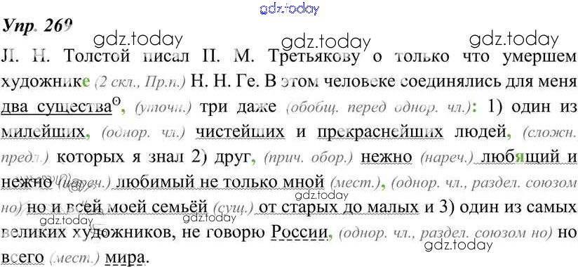 На страницах сайта gdz.today вы найдете учебный и вспомогательный материал, направленный на улучшения знаний школьной программы. ГДЗ - онлайн мир знаний Решение к упражнениям 269 Учебнику по Русскому языку для 8 класса Тростенцова, Ладыженская Просвещение 2014