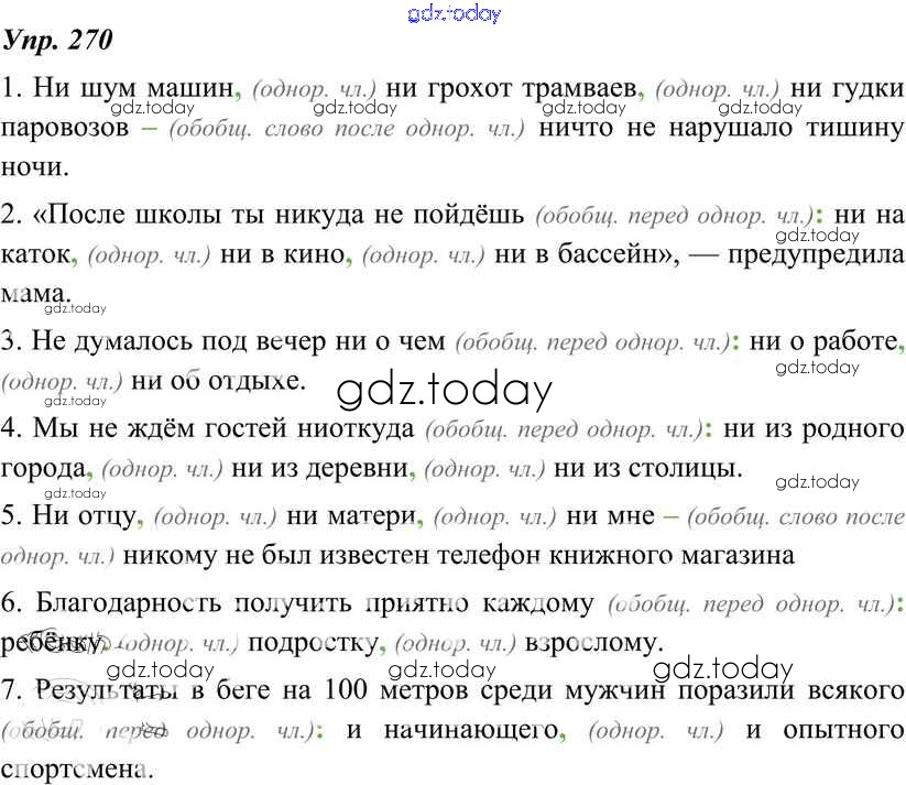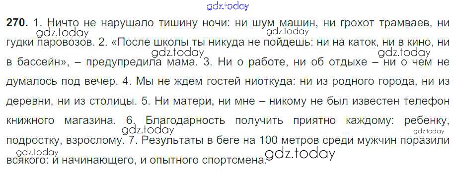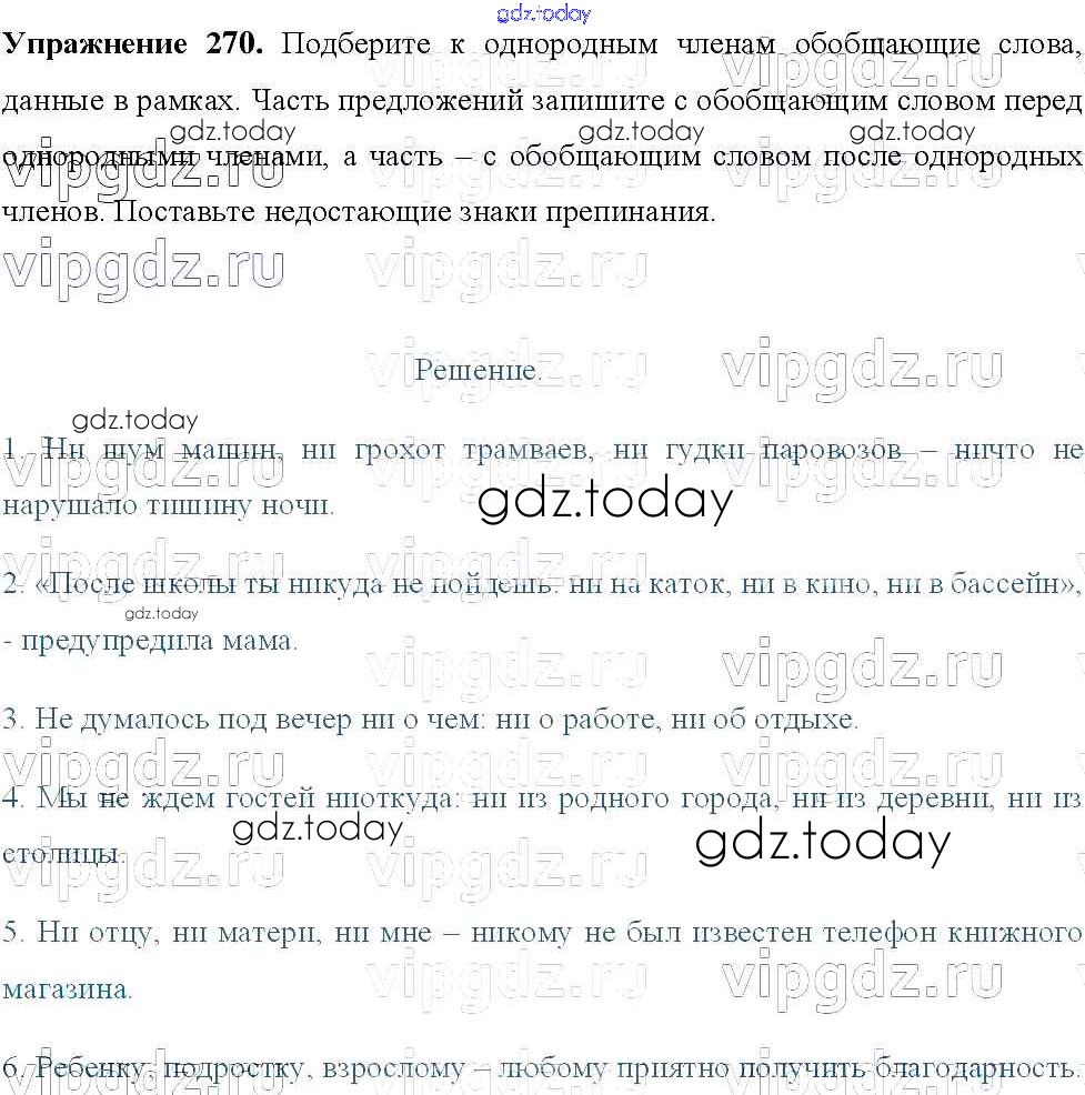 На страницах сайта gdz.today вы найдете учебный и вспомогательный материал, направленный на улучшения знаний школьной программы. ГДЗ - онлайн мир знаний Решение к упражнениям 270 Учебнику по Русскому языку для 8 класса Тростенцова, Ладыженская Просвещение 2014