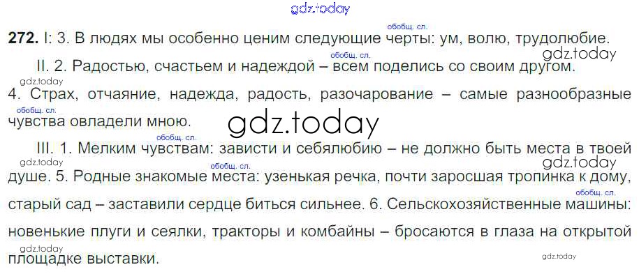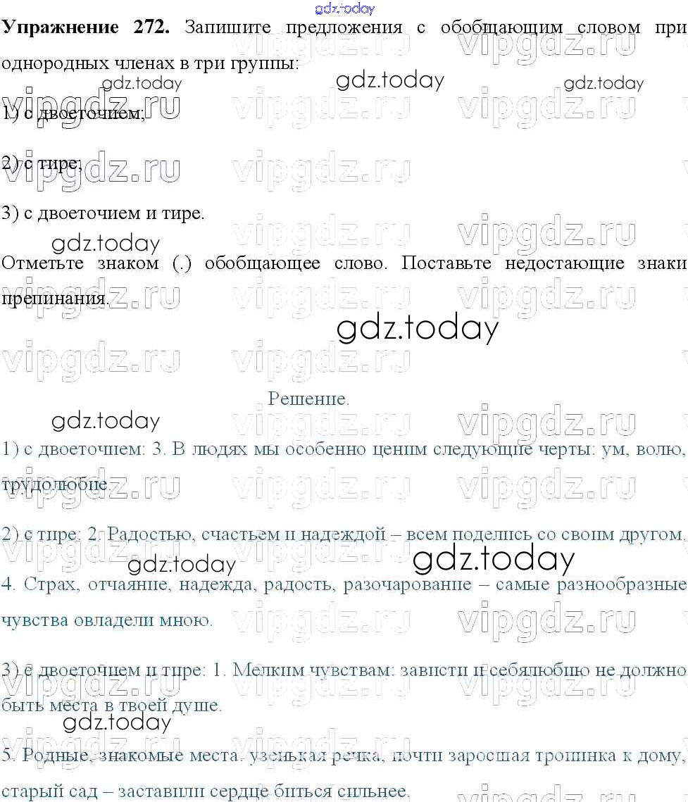 Ответы к Решение к упражнениям 272 Учебнику по Русскому языку для 8 класса Тростенцова, Ладыженская Просвещение 2014
