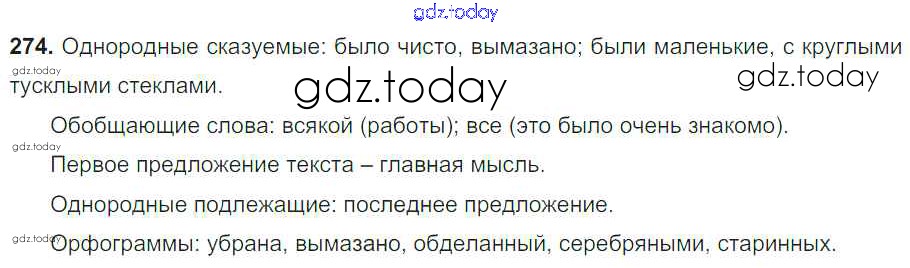 На страницах сайта gdz.today вы найдете учебный и вспомогательный материал, направленный на улучшения знаний школьной программы. ГДЗ - онлайн мир знаний Решение к упражнениям 274 Учебнику по Русскому языку для 8 класса Тростенцова, Ладыженская Просвещение 2014