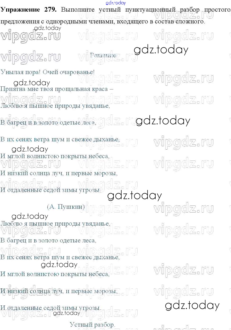 Ответы к Решение к упражнениям 279 Учебнику по Русскому языку для 8 класса Тростенцова, Ладыженская Просвещение 2014
