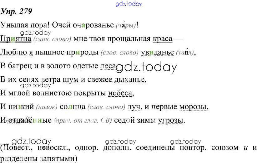 На страницах сайта gdz.today вы найдете учебный и вспомогательный материал, направленный на улучшения знаний школьной программы. ГДЗ - онлайн мир знаний Решение к упражнениям 279 Учебнику по Русскому языку для 8 класса Тростенцова, Ладыженская Просвещение 2014