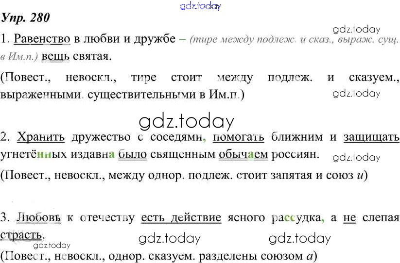 На страницах сайта gdz.today вы найдете учебный и вспомогательный материал, направленный на улучшения знаний школьной программы. ГДЗ - онлайн мир знаний Решение к упражнениям 280 Учебнику по Русскому языку для 8 класса Тростенцова, Ладыженская Просвещение 2014