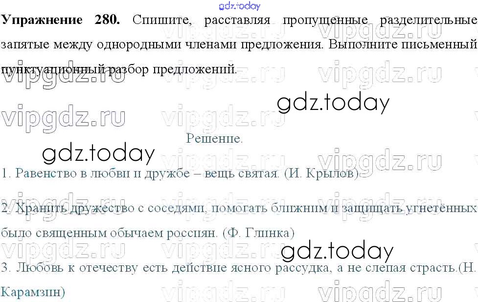 Ответы к Решение к упражнениям 280 Учебнику по Русскому языку для 8 класса Тростенцова, Ладыженская Просвещение 2014