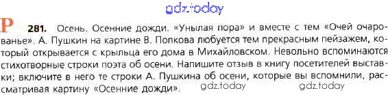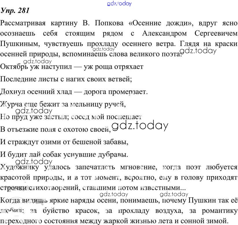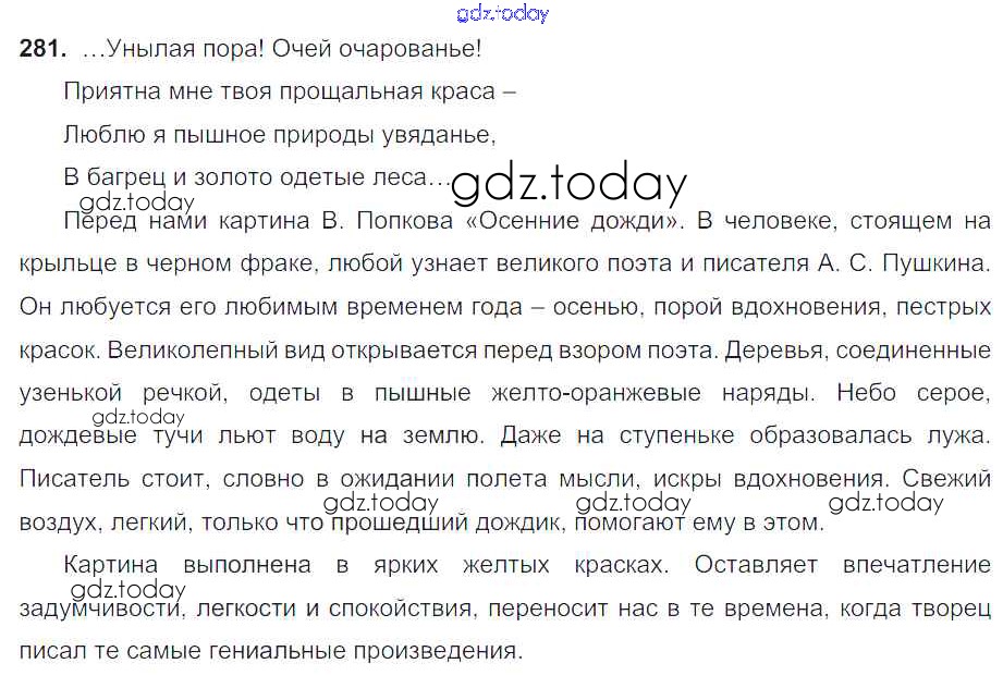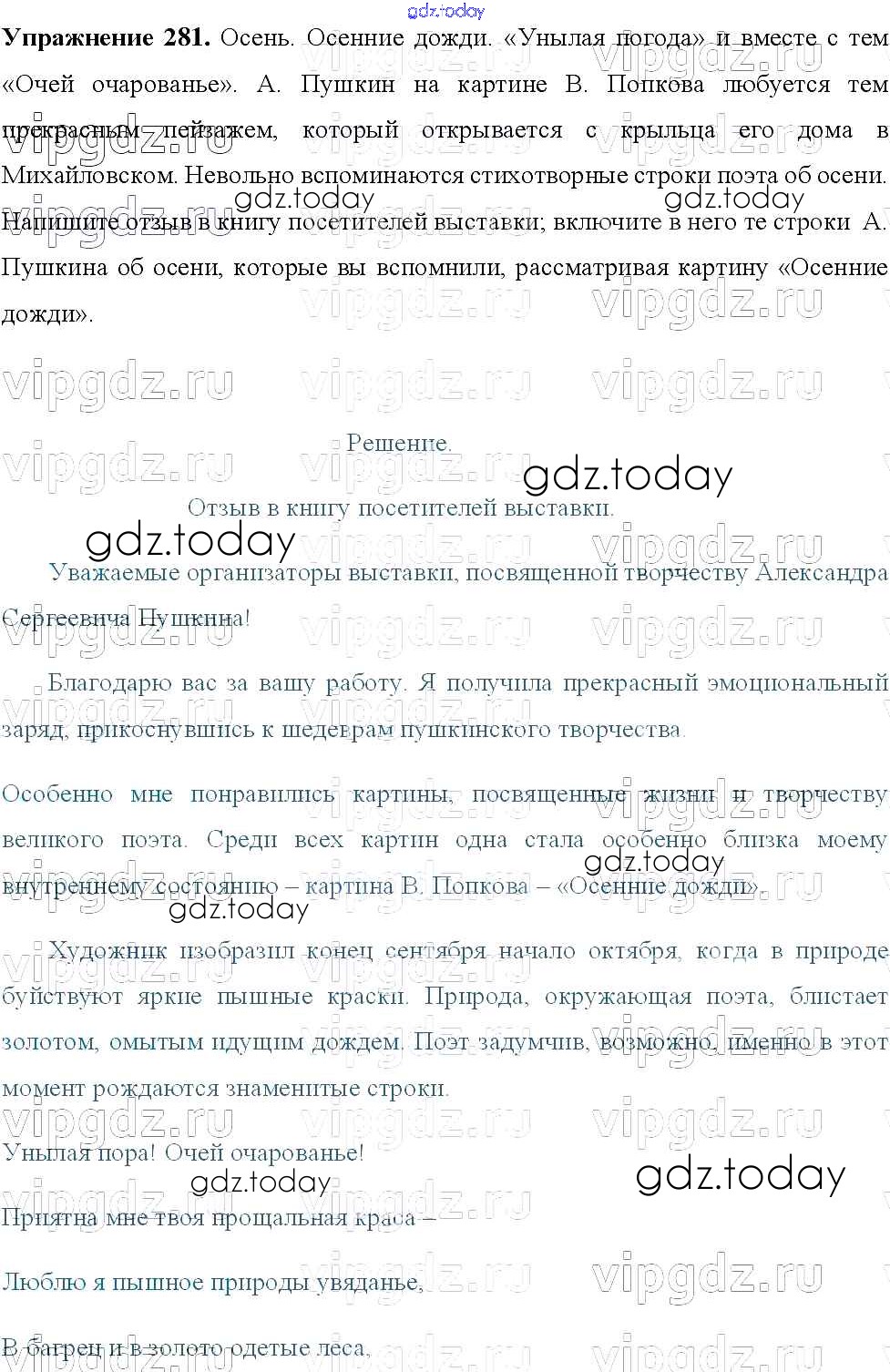 Ответы к Решение к упражнениям 281 Учебнику по Русскому языку для 8 класса Тростенцова, Ладыженская Просвещение 2014