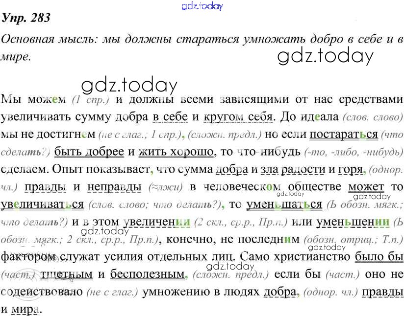 На страницах сайта gdz.today вы найдете учебный и вспомогательный материал, направленный на улучшения знаний школьной программы. ГДЗ - онлайн мир знаний Решение к упражнениям 283 Учебнику по Русскому языку для 8 класса Тростенцова, Ладыженская Просвещение 2014