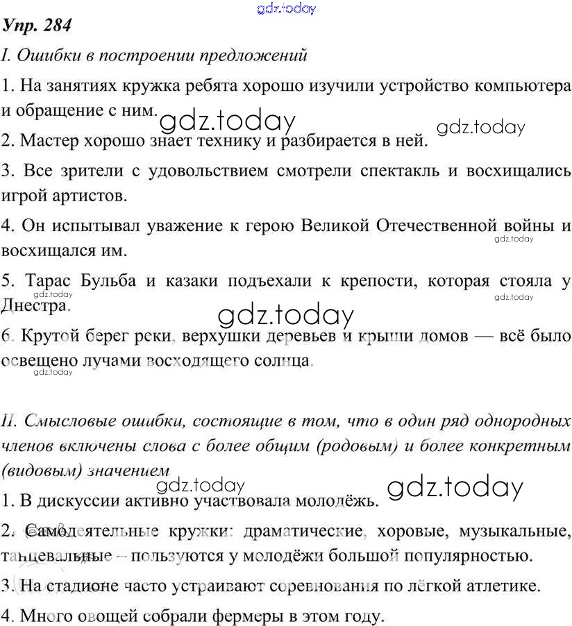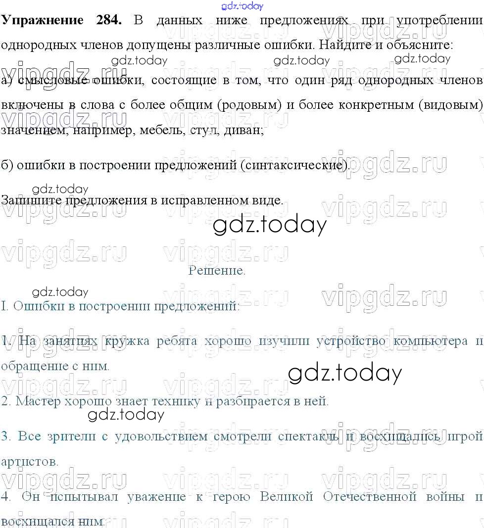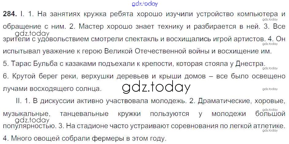На страницах сайта gdz.today вы найдете учебный и вспомогательный материал, направленный на улучшения знаний школьной программы. ГДЗ - онлайн мир знаний Решение к упражнениям 284 Учебнику по Русскому языку для 8 класса Тростенцова, Ладыженская Просвещение 2014
