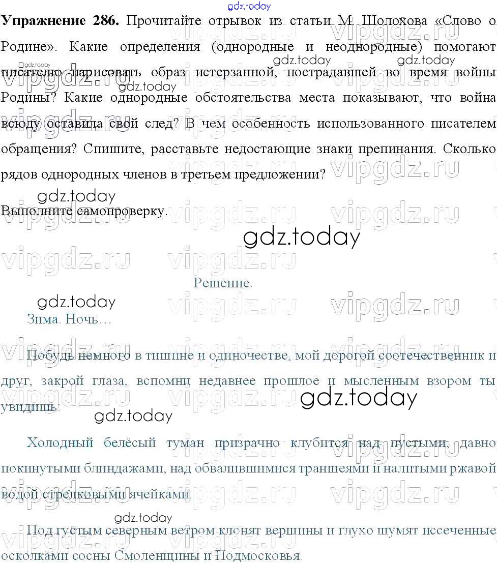 Ответы к Решение к упражнениям 286 Учебнику по Русскому языку для 8 класса Тростенцова, Ладыженская Просвещение 2014