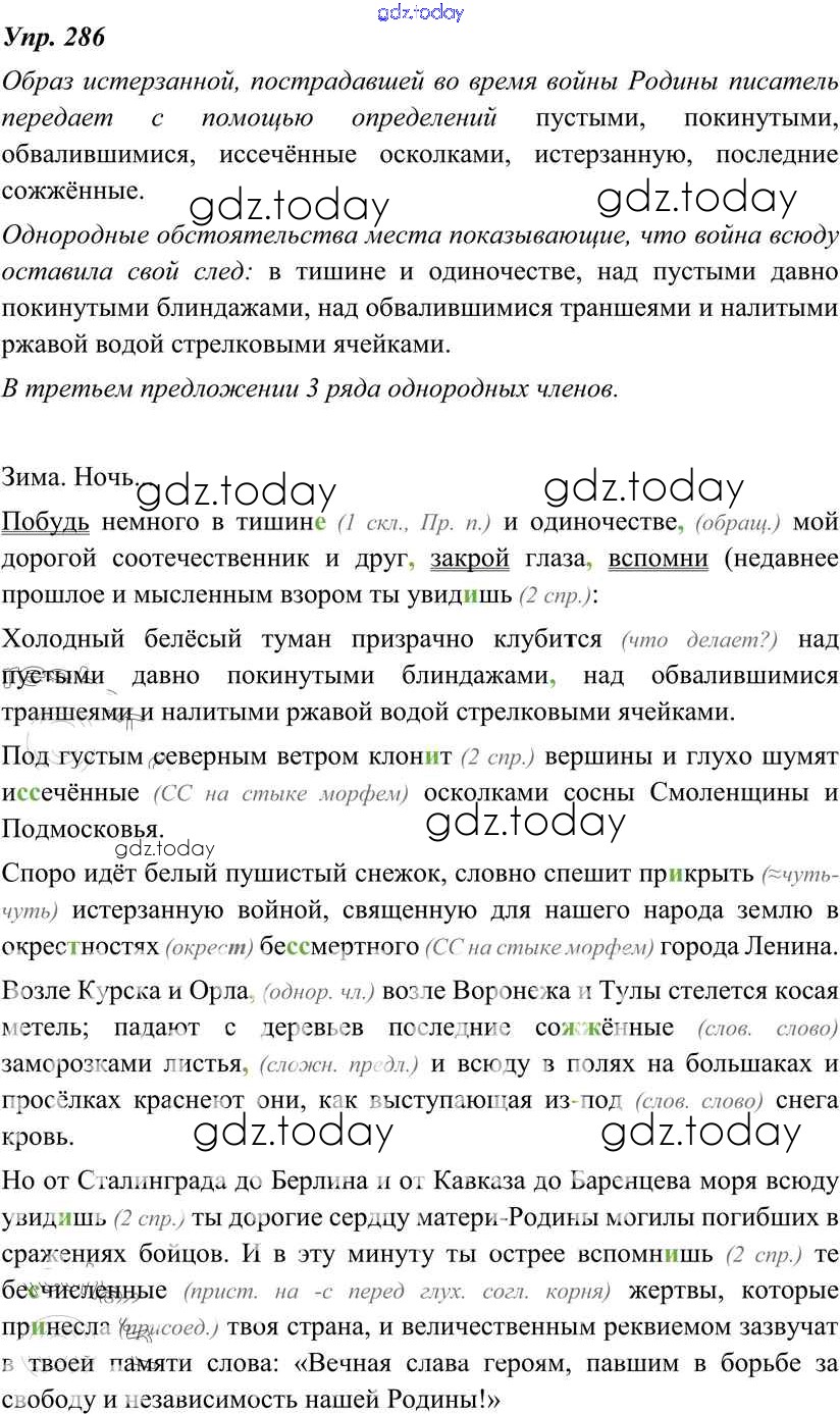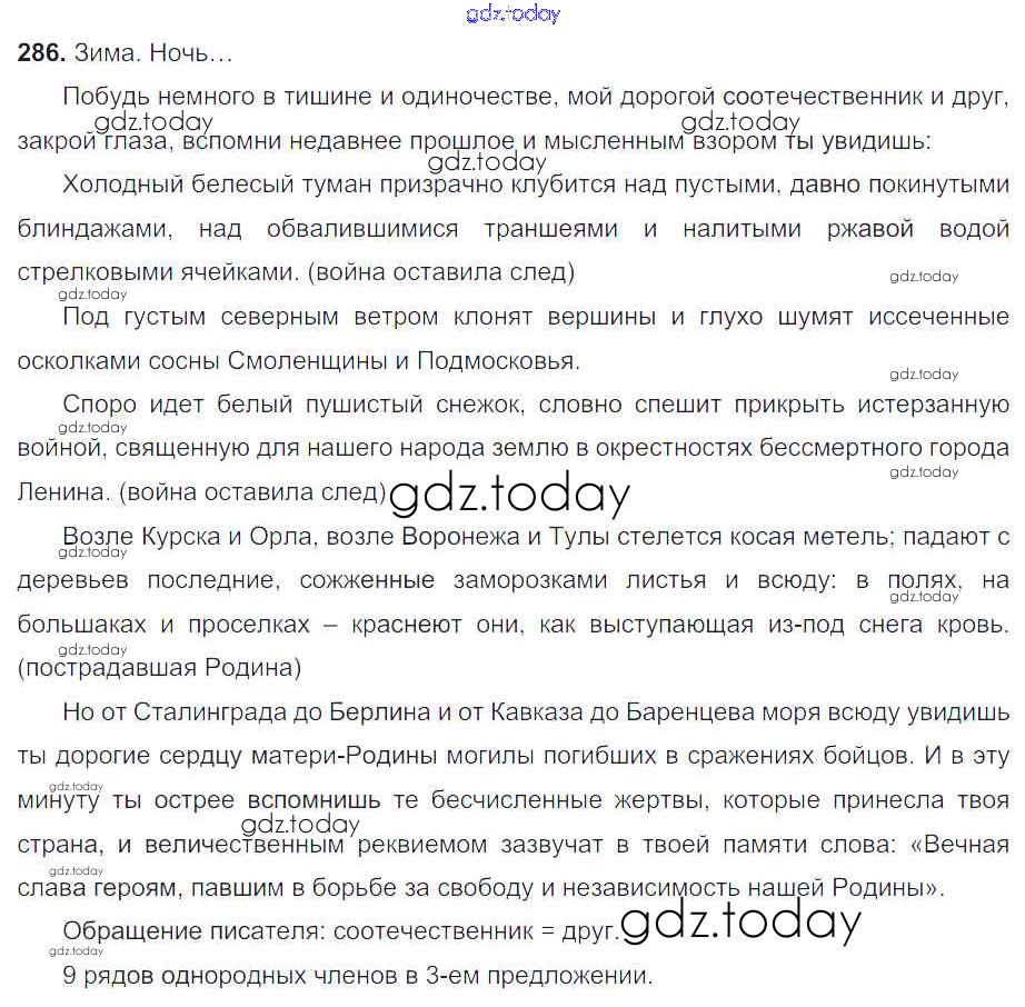 На страницах сайта gdz.today вы найдете учебный и вспомогательный материал, направленный на улучшения знаний школьной программы. ГДЗ - онлайн мир знаний Решение к упражнениям 286 Учебнику по Русскому языку для 8 класса Тростенцова, Ладыженская Просвещение 2014