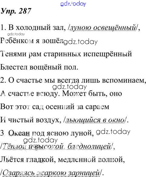 На страницах сайта gdz.today вы найдете учебный и вспомогательный материал, направленный на улучшения знаний школьной программы. ГДЗ - онлайн мир знаний Решение к упражнениям 287 Учебнику по Русскому языку для 8 класса Тростенцова, Ладыженская Просвещение 2014