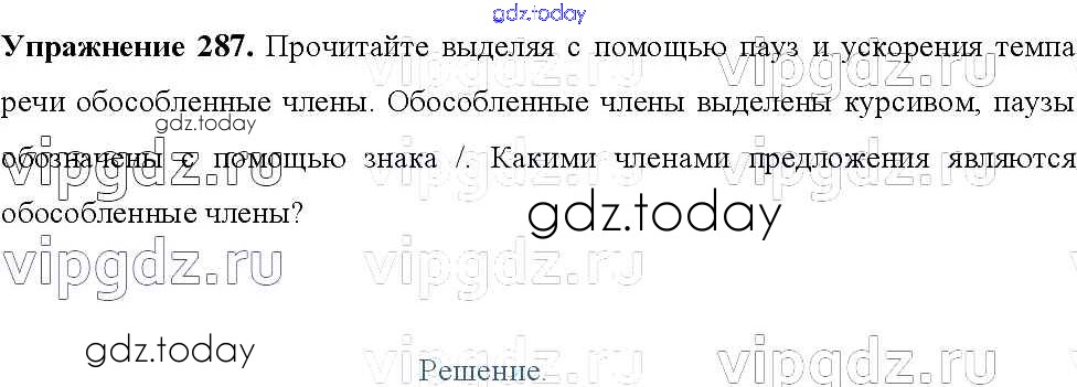 Ответы к Решение к упражнениям 287 Учебнику по Русскому языку для 8 класса Тростенцова, Ладыженская Просвещение 2014